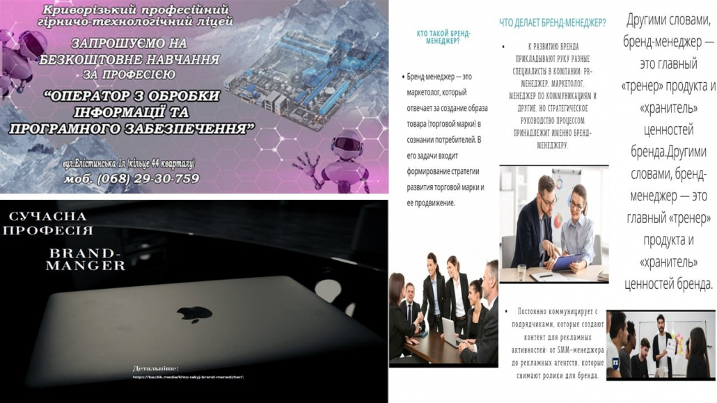 У Криворізькому професійному гірничо-технологічному ліцеї проходить декада інформаційних технологій і 15 лютого 2022 року у групі № 4 за професією «Оператор з обробки інформації та програмного забезпечення» пройшов онлайн урок-практикум: створення реклами на тему «Професія майбутнього».