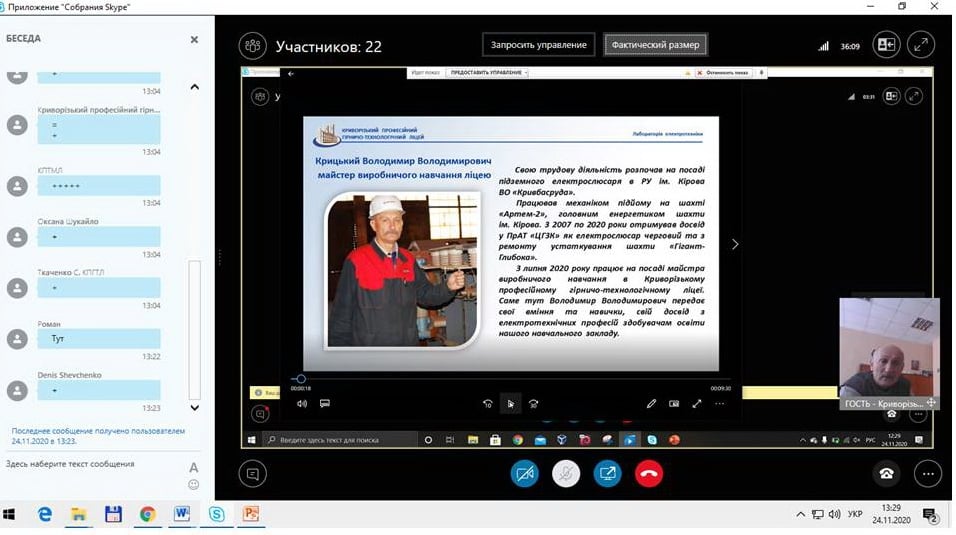 24.11.2021р. відбулося спільне заняття Школи впровадження нових виробничих технологій та секції педагогічних працівників гірничих професій закладів професійної (професійно-технічної) освіти Криворіжжя.