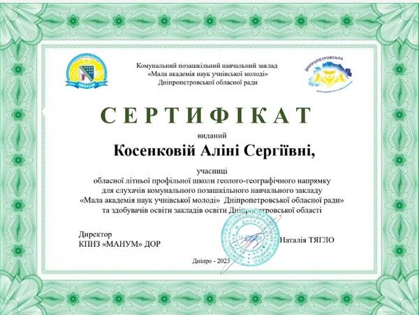 З 12 по 24 червня 2023 р. на базі Дніпропетровського відділення МАН була організована літня геолого-географічна школа, до участі в якій долучилися учні закладів освіти області.